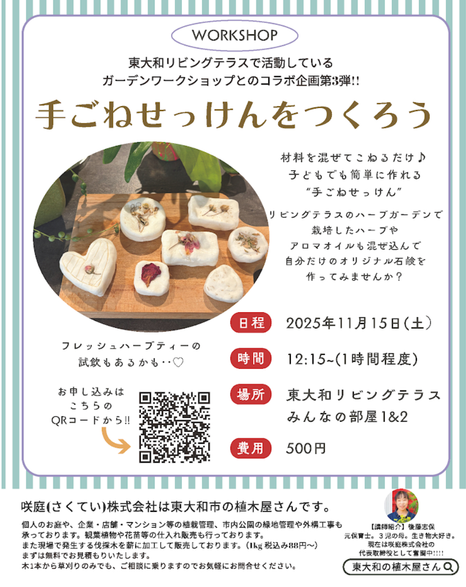 咲庭と東大和リビングテラスさんとのコラボワークショップも残すところあと1回となりました。