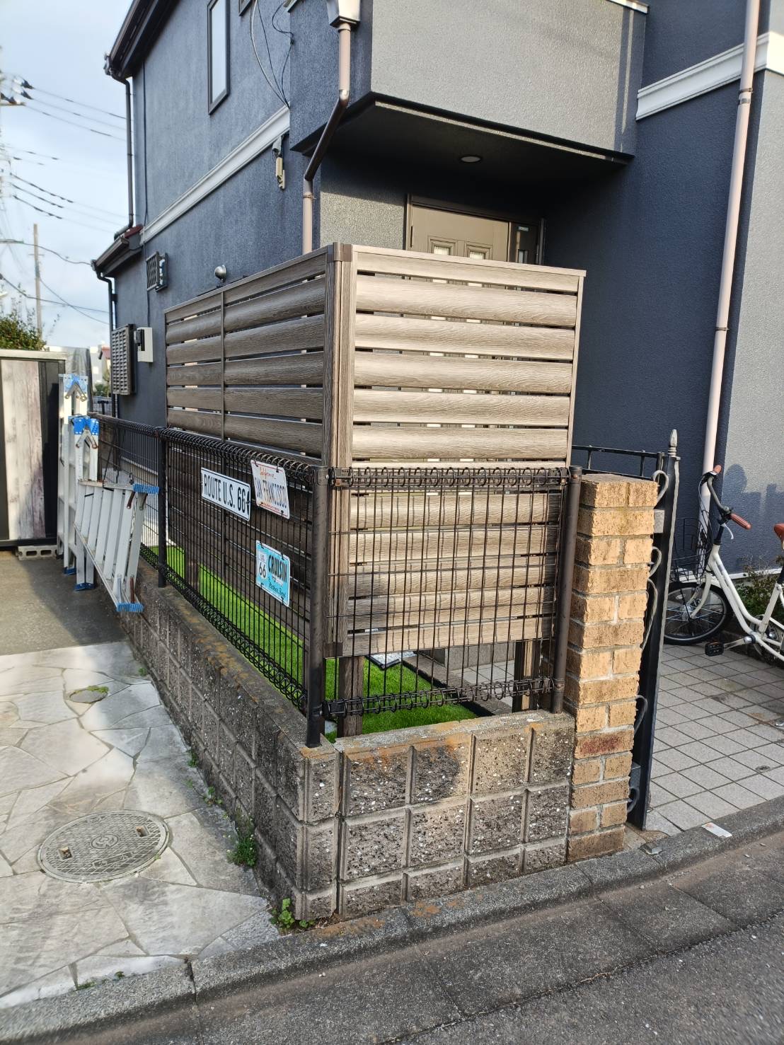 砂利、人工芝設置、目隠しフェンス設置のご依頼でした。